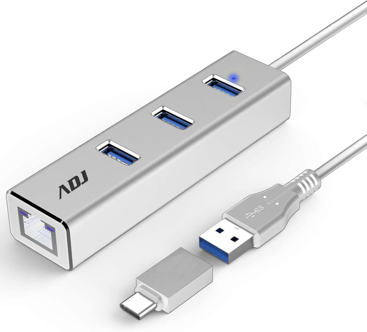 TODO: ADJ HB195 Hub – Adattatore USB-C, Ethernet Hub USB 3.0 a 3 porte con porta RJ45 Gigabit per MacBook Pro/Air, iPad Pro, Surface Book, XPS