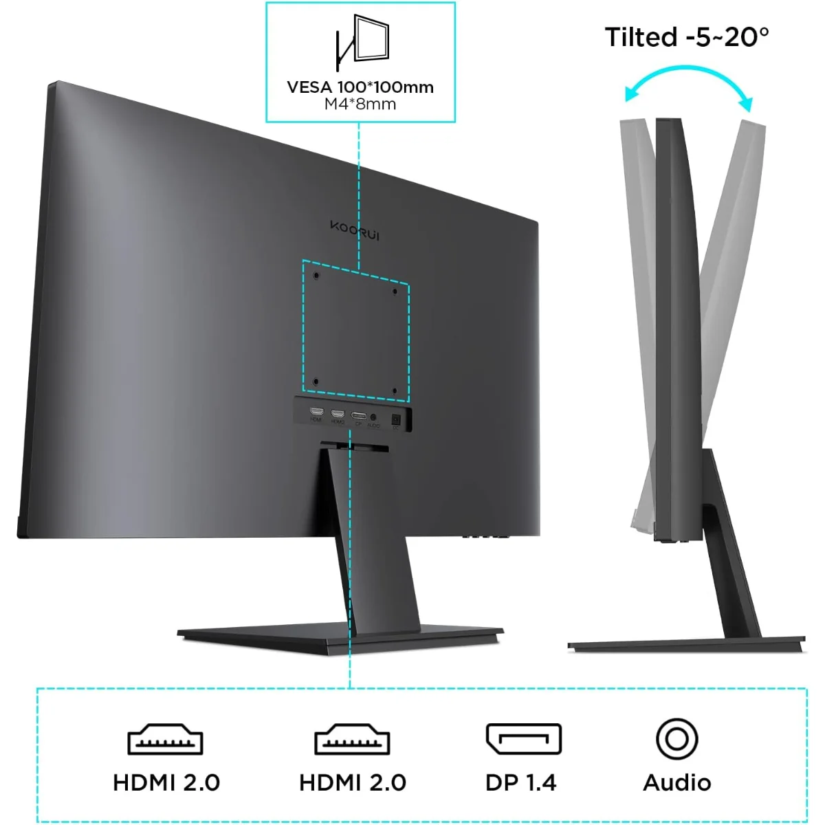 Il monitor offre anche una connettività versatile con 2x HDMI 2.0, DisplayPort 1.2 e uscita cuffie, oltre al supporto VESA 100x100mm per un montaggio semplice e flessibile.