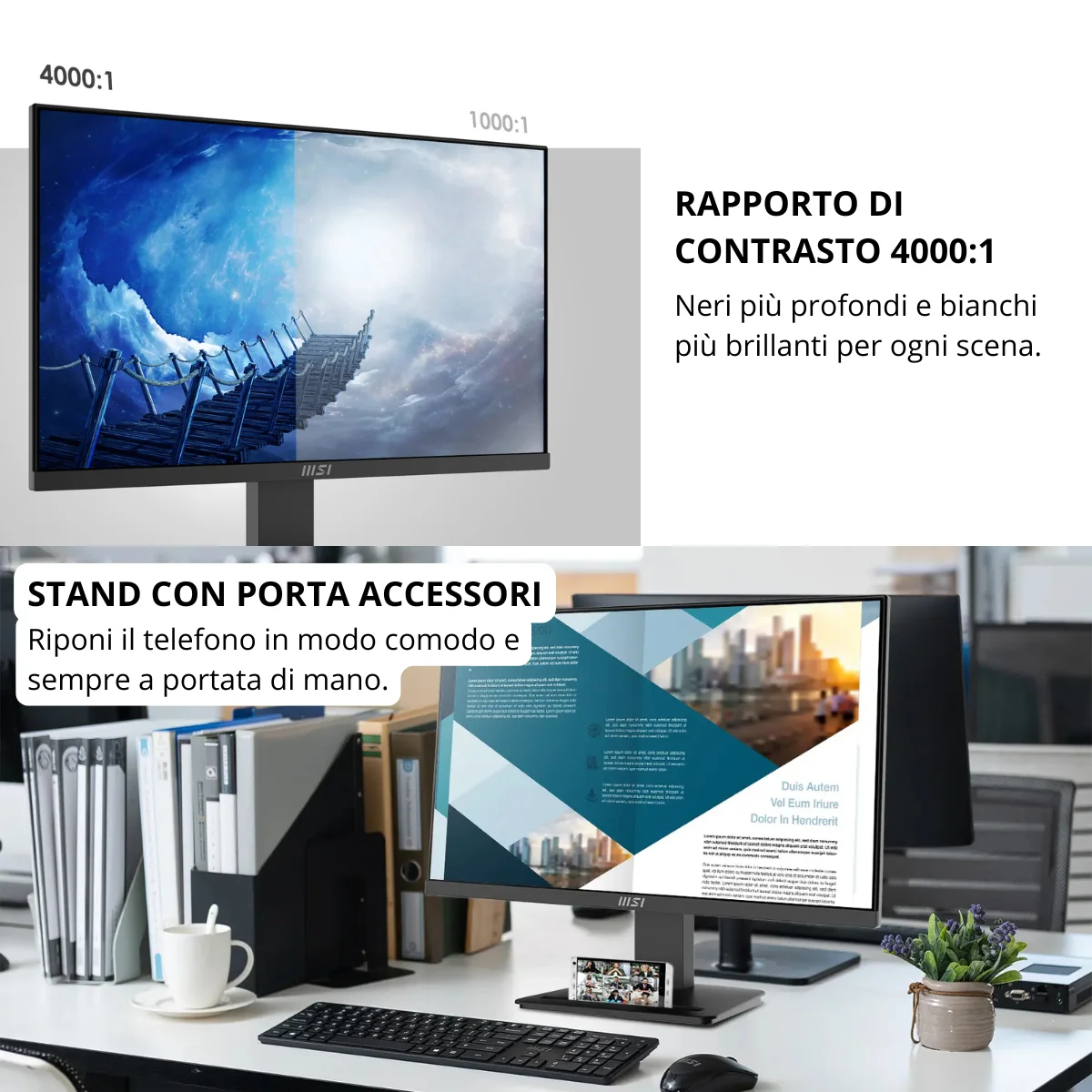 MSI PRO MP2412 – Monitor Business 23.8″, FHD, 100Hz, 1ms, VA, 113% sRGB, Eye Care