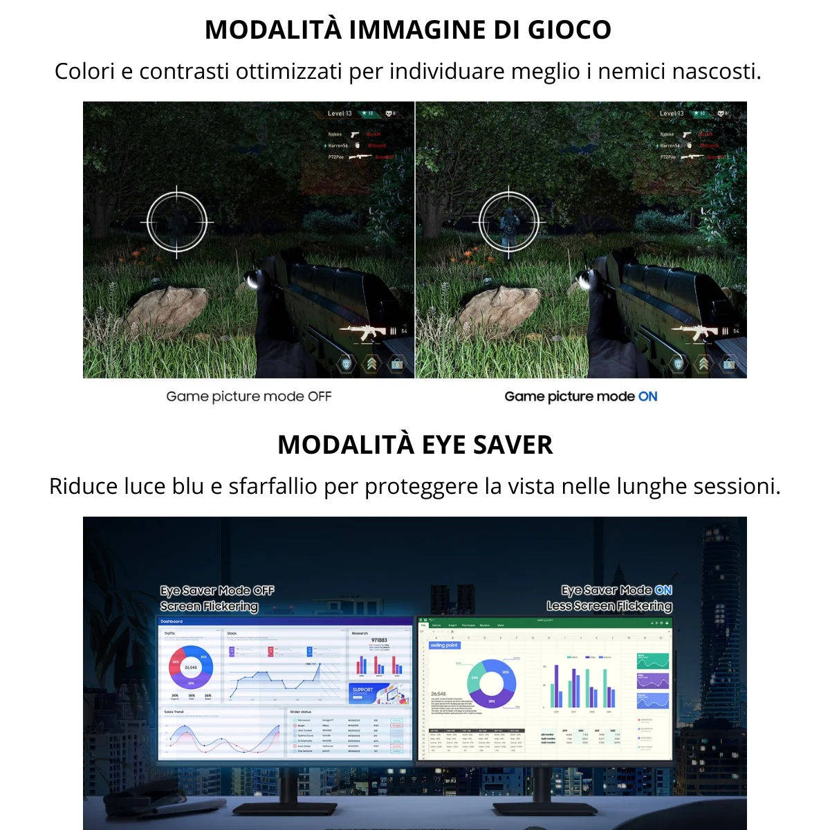 Modalità Eye Saver & Flicker Free per protezione degli occhi