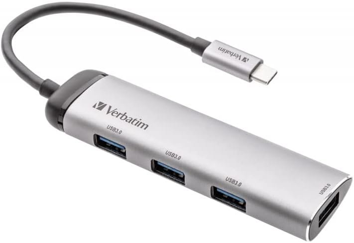 TODO: Verbatim USB-C Multiport Hub con 4 porte USB 3.2 Gen 1, Adattatore in Alluminio per MacBook, Laptop e Smartphone, Argento – Alta Velocità 5 Gbps