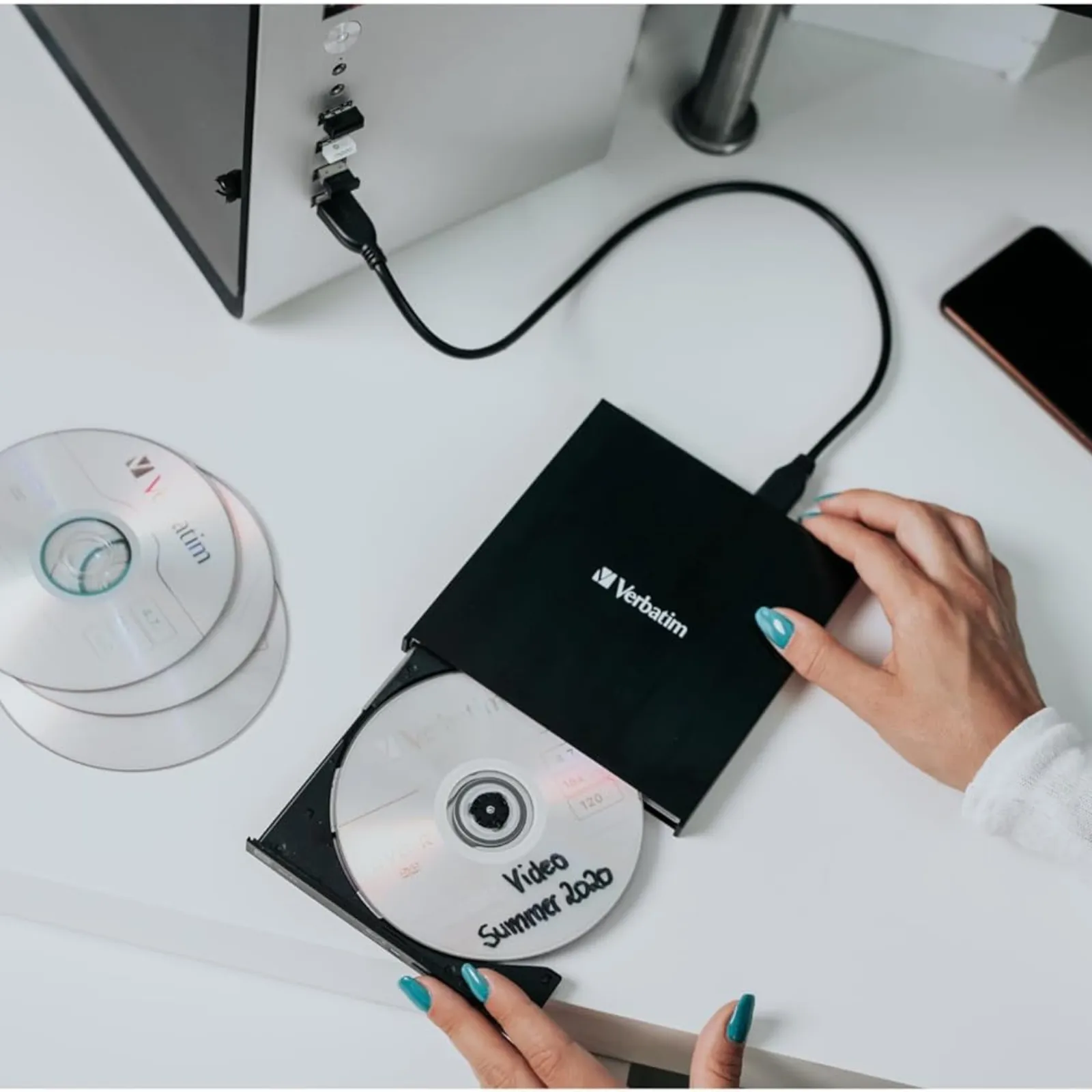 Il Verbatim Mobile DVD Rewriter è progettato per offrire una soluzione semplice e pratica per utilizzare dischi ottici con notebook e ultrabook moderni.
