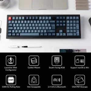 Keychron V6 Max QMK/VIA – Tastiera Meccanica Wireless Full Size 100% Custom, con Gateron Jupiter Switch Rossi, Keycap PBT, Hot-Swap, Knob, RGB e Layout US (ANSI)